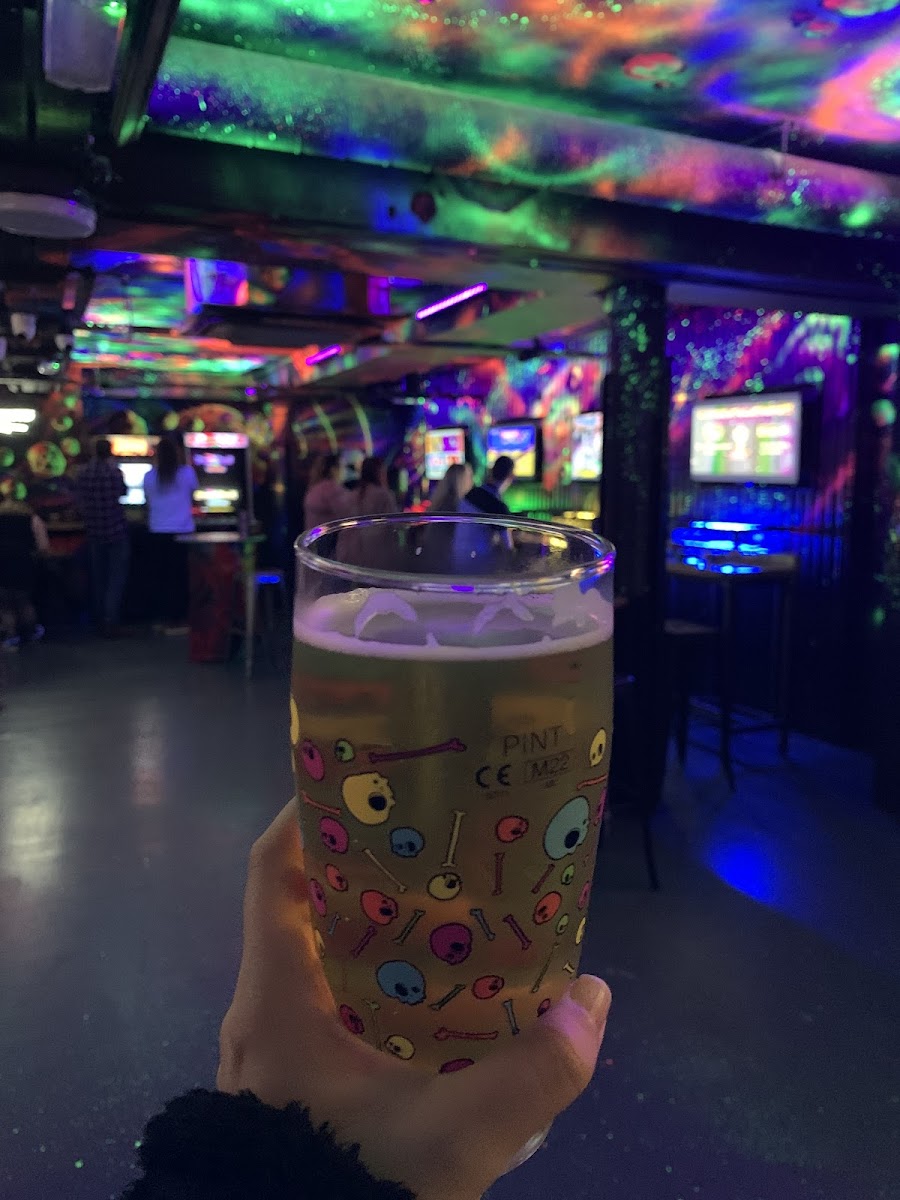 “Went for the guitar hero. Lots of vintage arcade games. Very nostalgic and good fun. Lots of neon decor. Didn't try the food. Decent selection of low alcohol beers.”